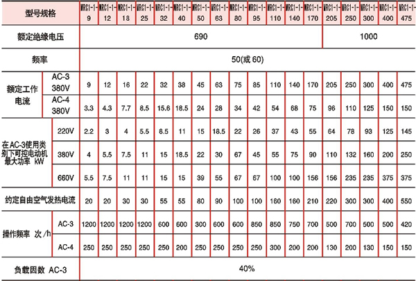 注:熱過(guò)載繼電器的整定電流應(yīng)≤接觸器的額定工作電流,吸引線(xiàn)圈電壓的其它規(guī)格可特殊定貨。