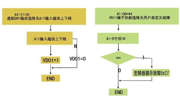 實(shí)現(xiàn)Al1超出上下限時變頻器提示故障Err27