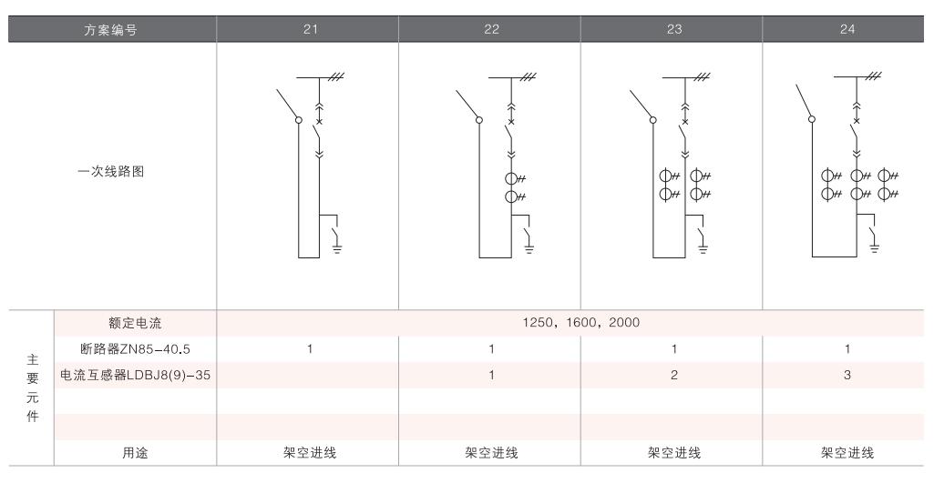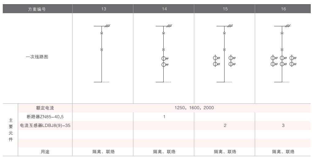 開(kāi)關(guān)柜的一次接線(xiàn)方案有27個(gè)常用典型方案,能滿(mǎn)足用戶(hù)電纜進(jìn)出線(xiàn)、架空進(jìn)出線(xiàn),聯(lián)絡(luò)級(jí)測(cè)量、保護(hù)等的需要,若有不同與現(xiàn)有方案的其他方案的需要,請(qǐng)與廠方協(xié)商。